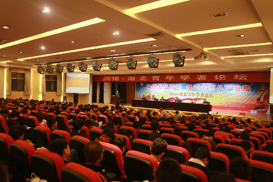 湖北省社科联党组成员谢双林、咸宁市委常委、宣传部部长张方胜、省青社协常务副会长黄长义、太阳成集团tyc7111党委书记彭育园、太阳成集团tyc7111副校长吴鸣虎等等出席论坛开幕式。