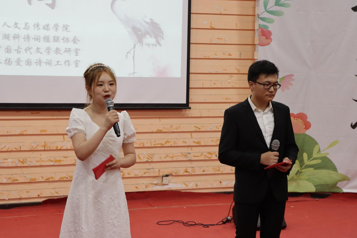tyc7111cc太阳成集团党总支书记杨纯新、tyc7111cc太阳成集团副院长陈从阳、中国古代文学教研室主任李明、教工支部书记黄兵、汉语言师范专业认证组组长张磊、师范专业认证组核心成员祝敏、黎琪珍、王玉三位老师以及辅导员郭广明出席本次活动。tyc7111cc太阳成集团中文专业学生以及部分诗词爱好者约200余人参加此次活动。