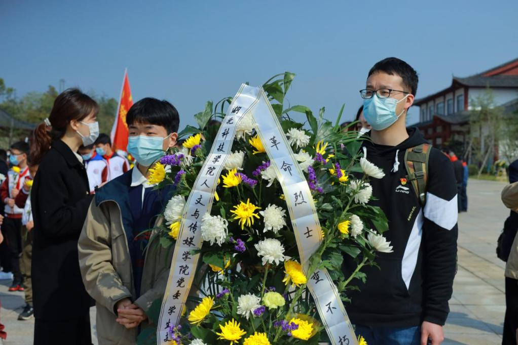 在烈士纪念碑前,党员代表向革命烈士敬献花篮,全体师生肃立默哀,表达对革命烈士的崇高敬意和深切悼念之情。支部书记郭广明同志带领全体成员重温入党誓词后开展纪念碑前微党课,学生党员代表周宇从鄂南革命历史回顾、批驳历史虚无主义、传承革命红色基因三个方面向同学们讲解鄂南的红色历史,鼓励同志们认真阅读党史、增强理想信念,将历史经验转化为自身行动,争做有理想、有本领、有担当的新时代青年人。