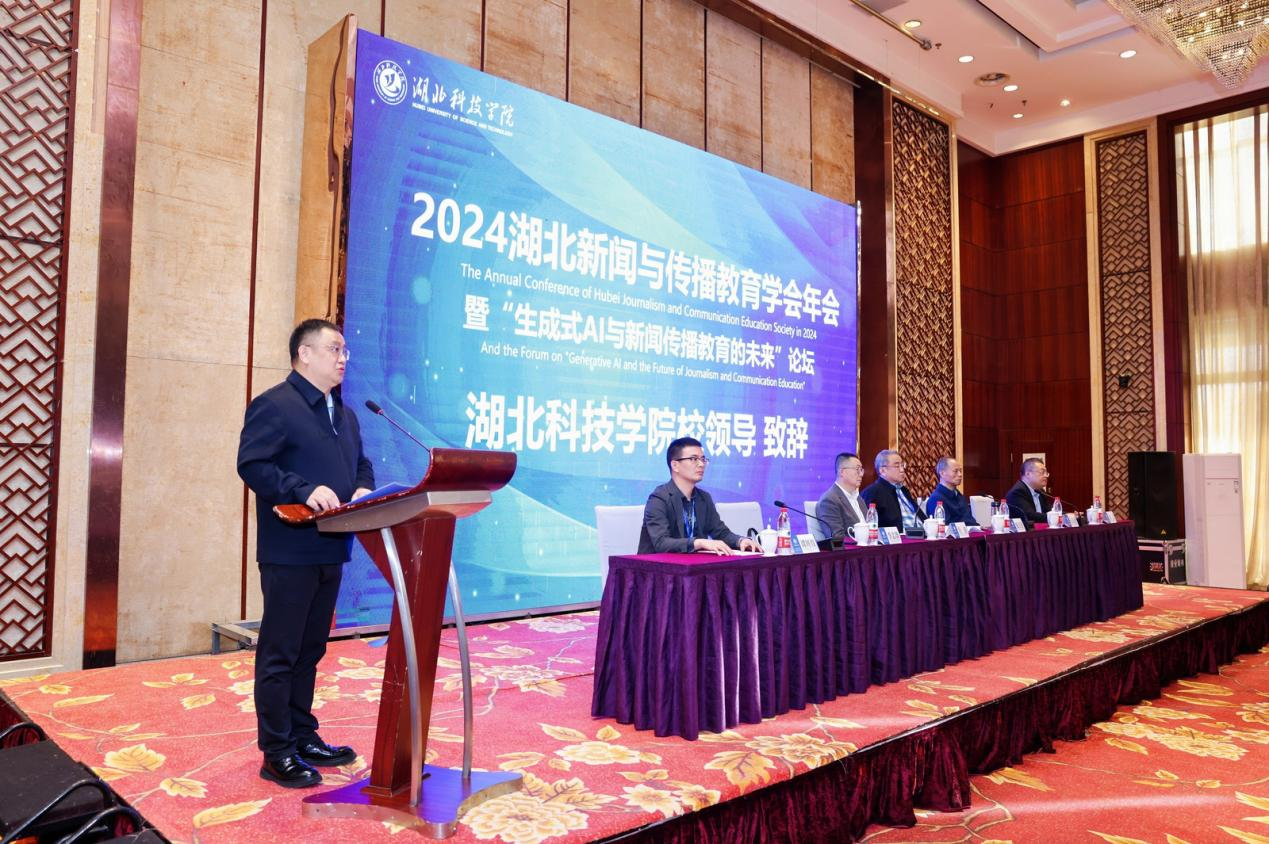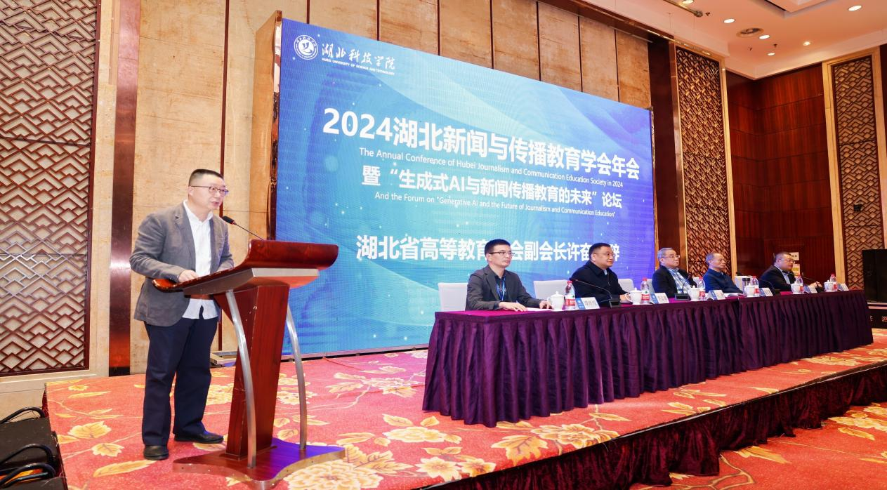11月9日,由湖北省高等教育学会新闻与传播教育专业委员会(以下简称“湖北新闻与传播教育学会”)主办,tyc7111cc太阳成集团承办的2024湖北新闻与传播教育学会年会暨“生成式AI与新闻传播教育的未来”论坛在太阳成集团tyc7111举行,来自武汉大学、华中科技大学、华中师范大学等近40所高校的140余位老师和学生参加了年会。湖北省高等教育学会副会长许奋教授,湖北新闻与传播教育学会会长、武汉大学新闻与传播学院院长强月新教授,太阳成集团tyc7111党委常委、副校长李志雄,太阳成集团tyc7111人文与传媒学院院长郭彧教授出席会议并致辞。开幕式由湖北新闻与传播教育学会常务理事、太阳成集团tyc7111人文与传媒学院副院长、教授谭辉煌主持。