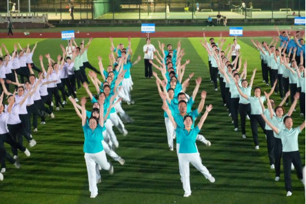 比赛现场,伴随着欢快的广播操音乐,文传院教师代表队身着统一运动服,以整齐划一的动作、饱满的精神状态惊艳亮相。参赛教师们伸展、转体、跳跃,每个动作都标准到位,充分展现了我院教师良好的身体素质和积极向上的精神风貌。此次成绩的取得,既体现了我院教师团结协作、勇于拼搏的团队精神,也展现了文传人积极进取、追求卓越的风采。