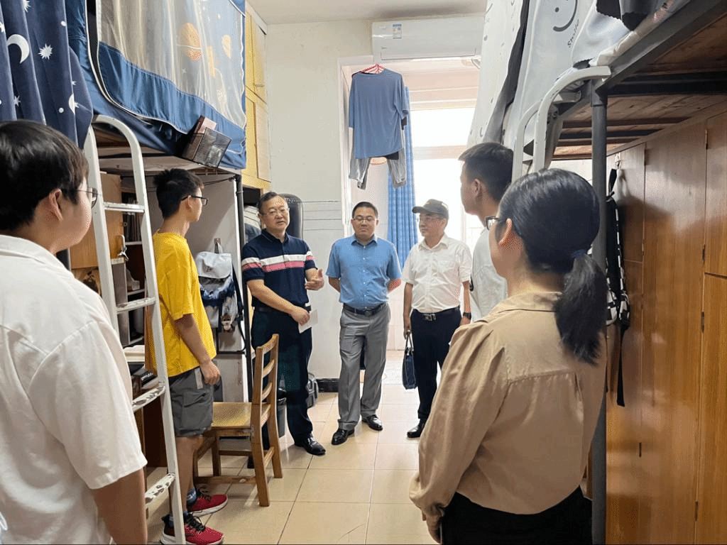 课后,白校长一行步行前往新区3栋宿舍走访学生寝室,与同学们进行了亲切交流与交谈,详细了解同学们在校的学习情况、生活水平和就业规划,他耐心询问“食堂的饭菜是否可口”、“寝室什么时候熄灯”、“学习生活上有没有困难”等问题。他叮嘱,要严格遵守疫情防控期间的相关规定,坚持劳动、坚持锻炼,保持身心健康。同时讲解了当下社会就业状况,教导学生要养成吃苦精神,他希望,同学们要珍惜校园时光,在大学里学会做人、学会沟通、增长本领、增长才干,才能应对瞬息万变的社会大环境。
